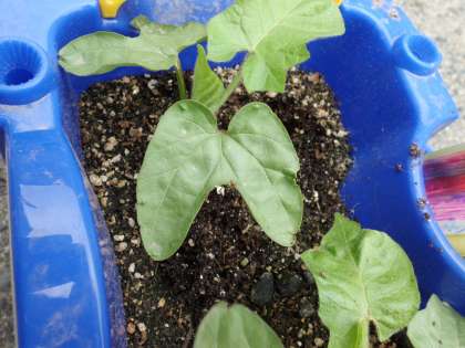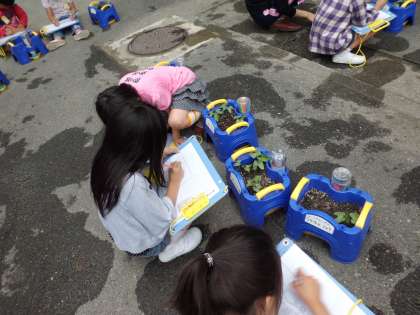 あさがおの芽が出ました!くきや葉の色,形に注目しながら観察をしました。