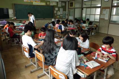 今日のスマイル活動は,グループごとに,プラカード作り,バッジ作りに取り組みました。6年生に教えてもらいながら楽しく作りました。