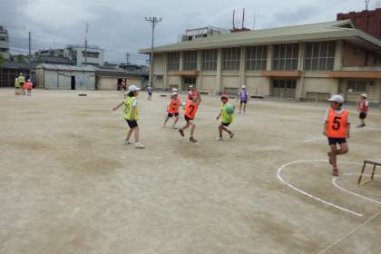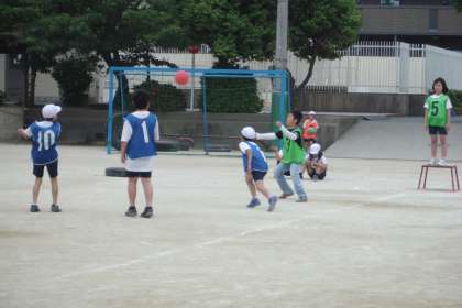 プレイヤー,ガードマン,ゴールマン,得点・時計係を交代しながらゲームをしています。
