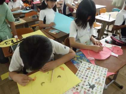 スマイル集会で作り終わらなかったプラカードは,6年生が最後に仕上げをしました。それぞれのグループの個性あふれるプラカードに仕上がりました。