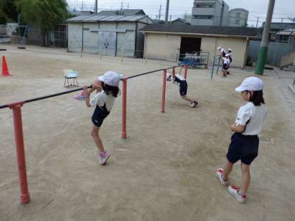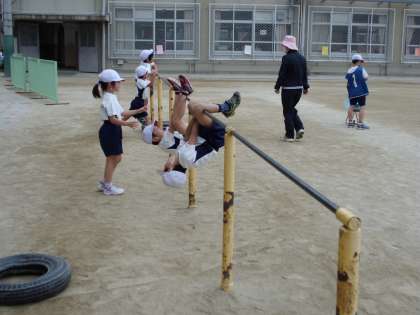 上手にできる子を見本にして,いろいろな技を連続して10回できるように挑戦しています。