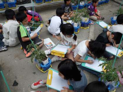 黄色い花からみどりの実ができ始めてきたので観察をしました。