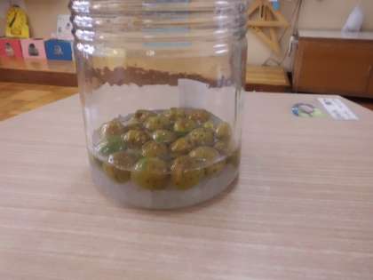今日は梅をつけてから4日目です。だいぶ氷砂糖が溶けてきました。