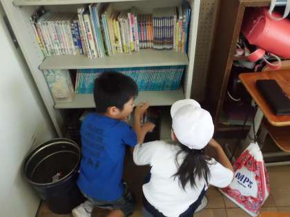 歌を歌った後,みんなで宝探しゲームをしました。教室のいろいろな所に係の人が作った宝物をかくし,必死に探しました。誕生日の人も嬉しそうにゲームに参加していました。6月お誕生日の二人,おめでとう!!