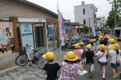 生活科で校区たんけんをしました。今回は,南コース。ヘミングの前では,「あ!ここ,お母さんがダイエットで行ってるところや。」。工場の前では,「うっわぁ。大きい!何作ってるのかな。」校区内にある建物に興味津々の様子でした。