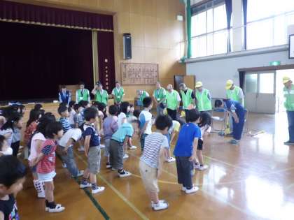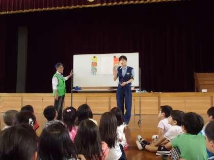 5時間目に交通安全教室がありました。伏見警察の方と交通安全推進委員の方に来ていただき,交通ルールについてたくさん教えてもらいました。集団下校には,実際に下校の様子も見ていただきました。