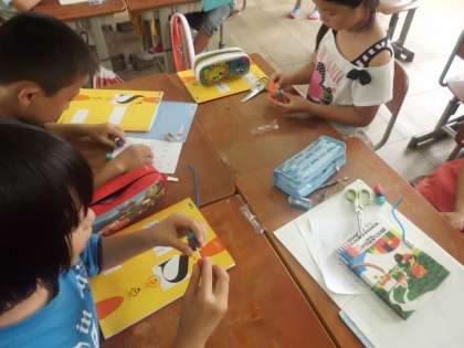そのあと,粘土で実際にチョウを作りました。今日は体ができたので,次は羽をつけていきましょう。