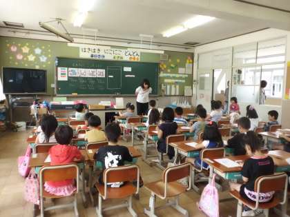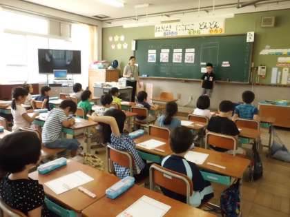 算数では,「ふえたりへったり」の単元の導入として,エレベータごっこをしました。子どもたちが実際にエレベータに乗ったりエレベータから降りたりすることで,「ふえる」「へる」ということの意味を考えました。また,数図ブロックを使っての操作も上手にできました。
