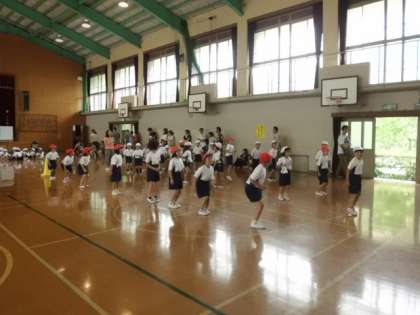 足を使ったり、腕を使ったり、友達とやさしくストレッチをしたりして、子どもたちは楽しく活動していました。