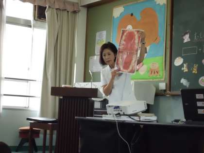3時間目に歯科衛生士さんに来ていただき,歯磨き指導をしてもらいました。なぜ虫歯になるのか,上手な歯磨きの仕方などについて,くわしく教えていただきましたね。