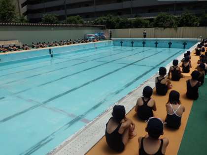 今年初めての水泳学習がありました。心配していた台風の影響もなく,快晴のもと,気持ちよく学習をスタートさせることができました。