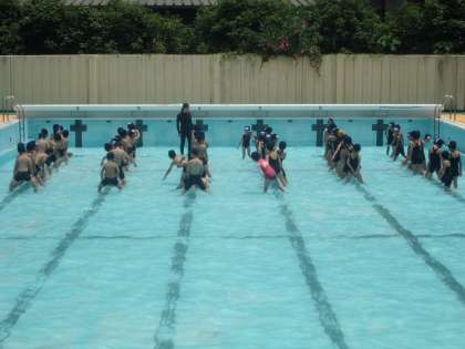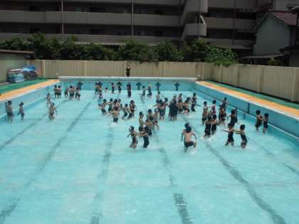 わにさんあるき,またくぐり競争,かもつ列車をしました。水も冷たすぎず,とてもきもちよかったです。