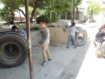 まずは,かまどの準備として,かまどに置いてあるタイヤをどかしました!
