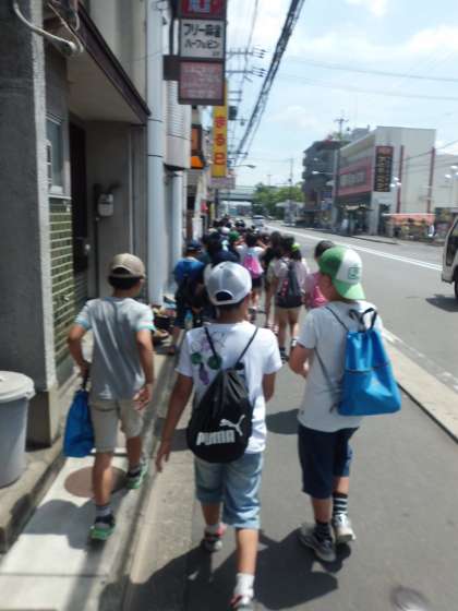 とてもよいお天気の中,みんなで並んで歩いて行きました。