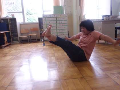 朝の体操では組体操に向けてコツコツ頑張っています。最近は1人技をいくつか続けてできるように練習しています。