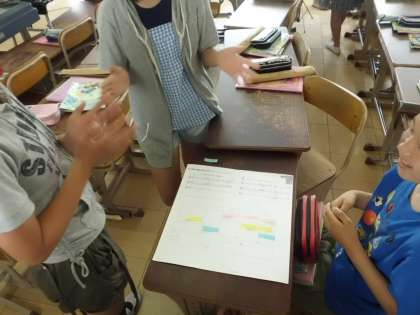 今日は,歌と手拍子のリズムを合わせてグループごとに音楽を作りました。「強弱」や「速度」などを変化させて,グループの個性あふれる素敵な音楽を作ることができました。