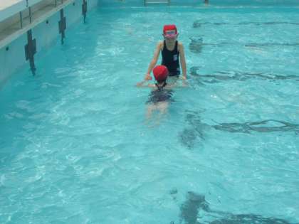 ここでは,バタ足の練習をしたり,ヘルパー・ビート板などを使ったりしながらクロールの練習をします。