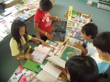 はじめて見る本ばかりで,子どもたちは大喜び。