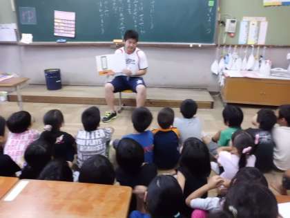 先生の読み聞かせに,みんな真剣に聞き入っていました。