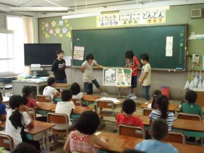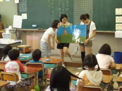 おはようタイムに,6年の図書委員会の人たちが読み聞かせに来てくれました。どれもおもしろい話ばかりで,1年生のみんなは真剣にお話を聞いていました。