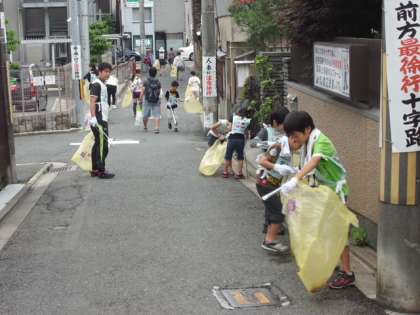 みんな,各地に散らばって,一生懸命ゴミ拾いを行いました。