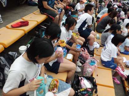 競技の合間に,お弁当を食べました。みんな食欲旺盛です。ぺろりと食べ上げました。