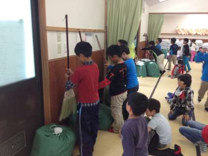 使ったほうきもきちんと片付けています。