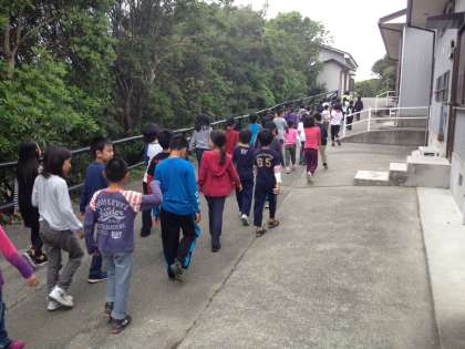 今は,今夜行われるきもだめしの道順を確認しています!