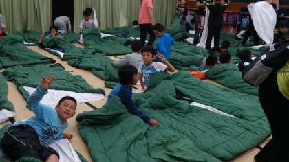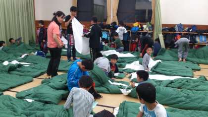 男子はテントではなく,男子全員で90畳で寝ることにしました。