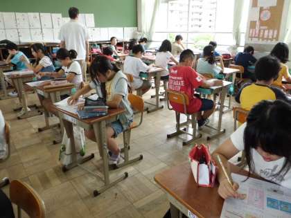 今日のテストは,「ん〜難しい〜・・・えーっと・・・」の小声がちらほら・・・。
