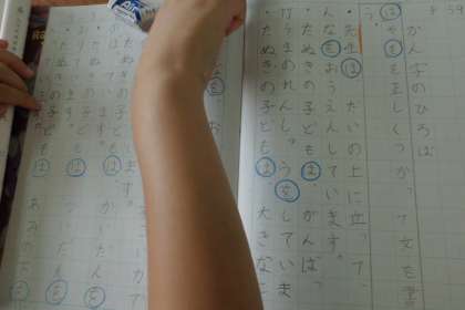 国語「かん字の広場」では,「は」や「を」を正しく使って挿絵を見ながら文章を考えました。「たぬきの子どもたちは,竹うまのれんしゅうをがんばっています。」など,色々な文章ができました。でも,まだまだ,「は」と「わ」,「を」と「お」が混ざっている子がちらほら。これからも気をつけて文章を書きましょうね。