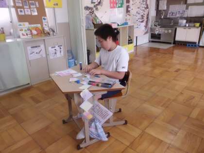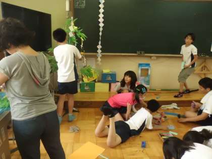 もうすぐ七夕!ということで七夕飾りを作りました。ちょうちん・ふきながし・天の川・星などなど,たくさんの飾りを作って笹がにぎやかになりました。6年生のお友だちにも願い事を書いてもらいましたよ。