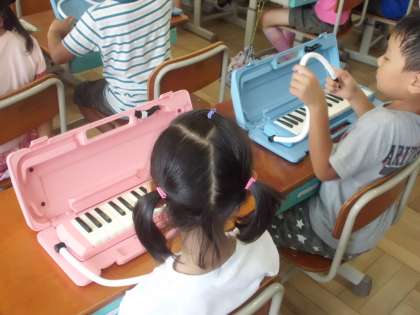 今日の音楽では,けんばんハーモニカを初めて使いました。