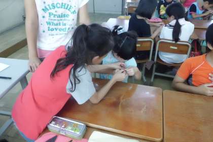 また,1年生にやさしく教えたり,声をかけたりする姿もありました。