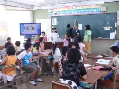 今日はスマイル集会の日でした。第一部では,6年生が事前に考えた遊びを楽しみました。ビンゴや宝さがしなど,この日のために6年生は一生懸命に準備を進めてきました。