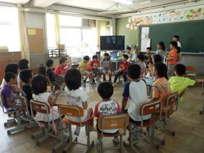 今日はスマイル集会がありました。第一部では,各教室で6年生が考えた遊びを楽しみ,第二部では集会委員会が企画した遊びを体育館で楽しみました。縦割りの友達とも大分打ちとけ合ってきた子どもたちです。