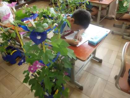 4月に植えたあさがおも、きれいな花を咲かせています。