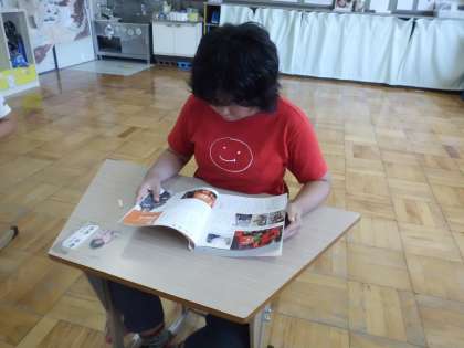 「どんなお仕事を調べてみたいかな?」「どんなお仕事に興味があるかな?」ということでお仕事大百科を読んで1人10こずつのお仕事を選びました。今まで関心があるとは知らなかった職種も選んでいてびっくりしました。これから本で調べたり,インタビューをしたり,お手紙を書いたりして詳しく調べていきたいと思います。
