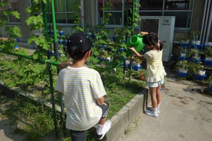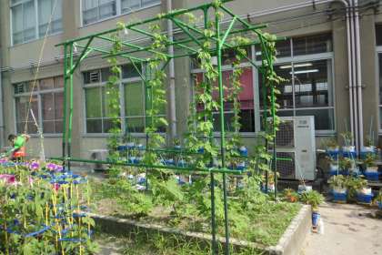 4年 ツルレイシがどんどんのびています。