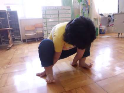 「カエル」に挑戦中です。手で体を支えて体を浮かすのはなかなか難しいです。