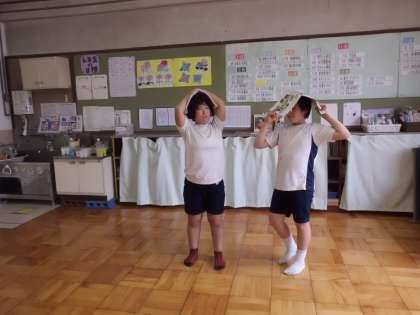 学校内のいろいろな場所・通学路・家の中などで「もし地震があったらどうやって自分の身を守ればいいのか」を考えました。机などがなければ分厚い本で頭を守るのも有効だとわかり,練習してみました。だんご虫のように丸くなることも大切だそうです。