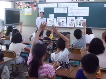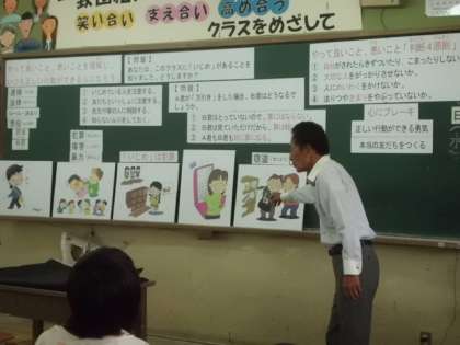 暴力やいじめも犯罪だということを教えていただき,子どもたちは真剣に話を聞いていました。