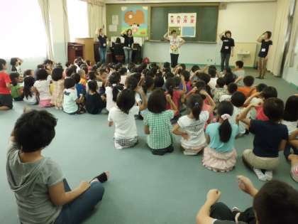大仏さんの手遊び歌を教えていただいて楽しく歌ったり,お化けの出てくるお話を聞かせてもらったりしました。