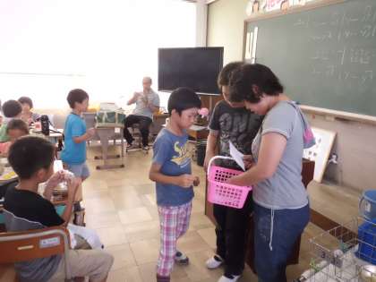 3−3にプレゼントを届けに行きました。今日は満点・50点のお友だちがたくさんいましたよ♪