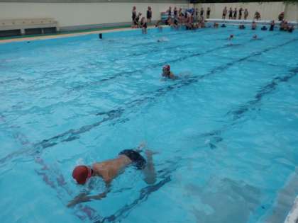 砂川小学校では,毎年夏休みに「メダカ教室」を行い,6年生は25mを泳ぎきることを目標にがんばっています。今年の6年生のメダカ教室参加者は,なんとゼロです!6年1組・2組とも今年は全員が25mを泳ぎきることができました!