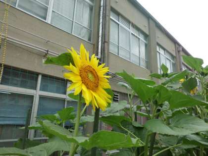 大きく成長したヒマワリを観察しました。植えたころはあんなに小さな種だったのに,あっという間に見上げる高さに成長しました。これからももっともっと伸びていくのでしょうか。今後の成長が楽しみです。