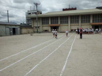 久しぶりに晴れたので,運動場で短距離走を計測しました。いい緊張感が漂っていました。