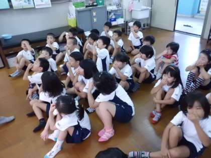 まずはじめに,保健室の佐々木先生より鼻血の対処法を教えていただきました。