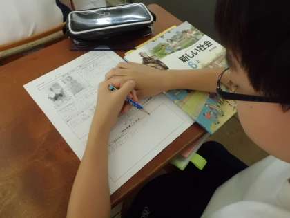 今日は,解体新書が完成するまでについて学びました。杉田玄白や,前野良沢がオランダ語の医学書の翻訳をし,「解体新書」として出版するまでに,実際の解剖を「身分制度のもとで百姓や町人とは別に厳しく差別されてきた人」が行っていたことについて知りました。このような人が,すぐれた解剖の技術を生かして,このころの医学を支えていたという事実に,驚きと尊敬の念をもった子どもたちでした。