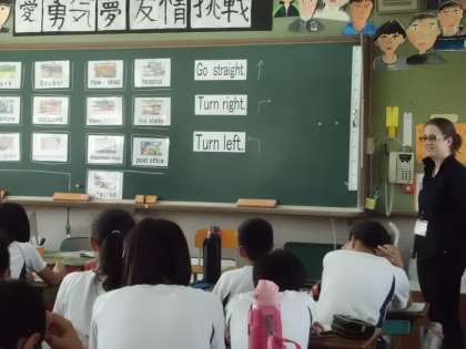 今日はサラ先生と一緒に,道案内の仕方を勉強をしました。これで,道端で外国の方に道を尋ねられても,バッチリ!・・・かな?!
